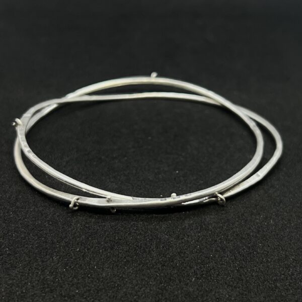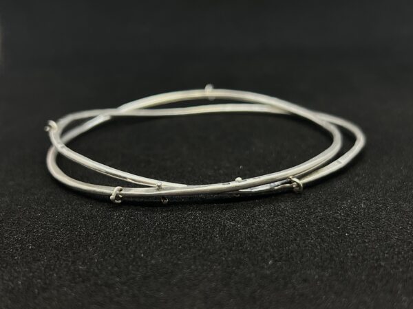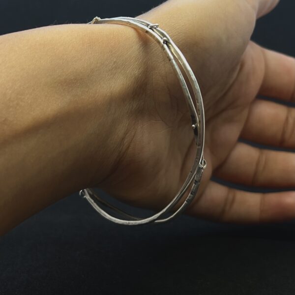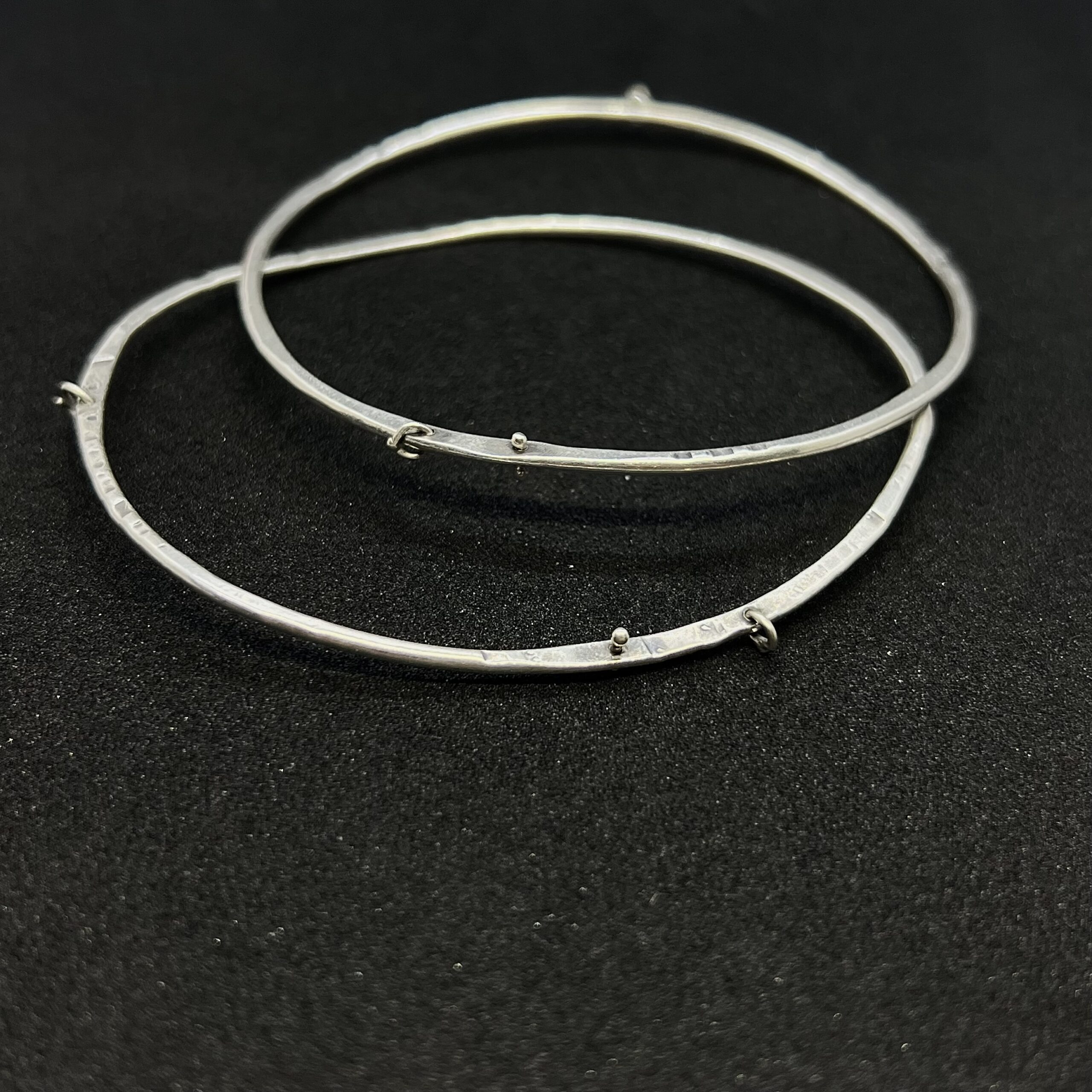 Two 925 silver hoop bracelets that are handmade and painted with oxide.